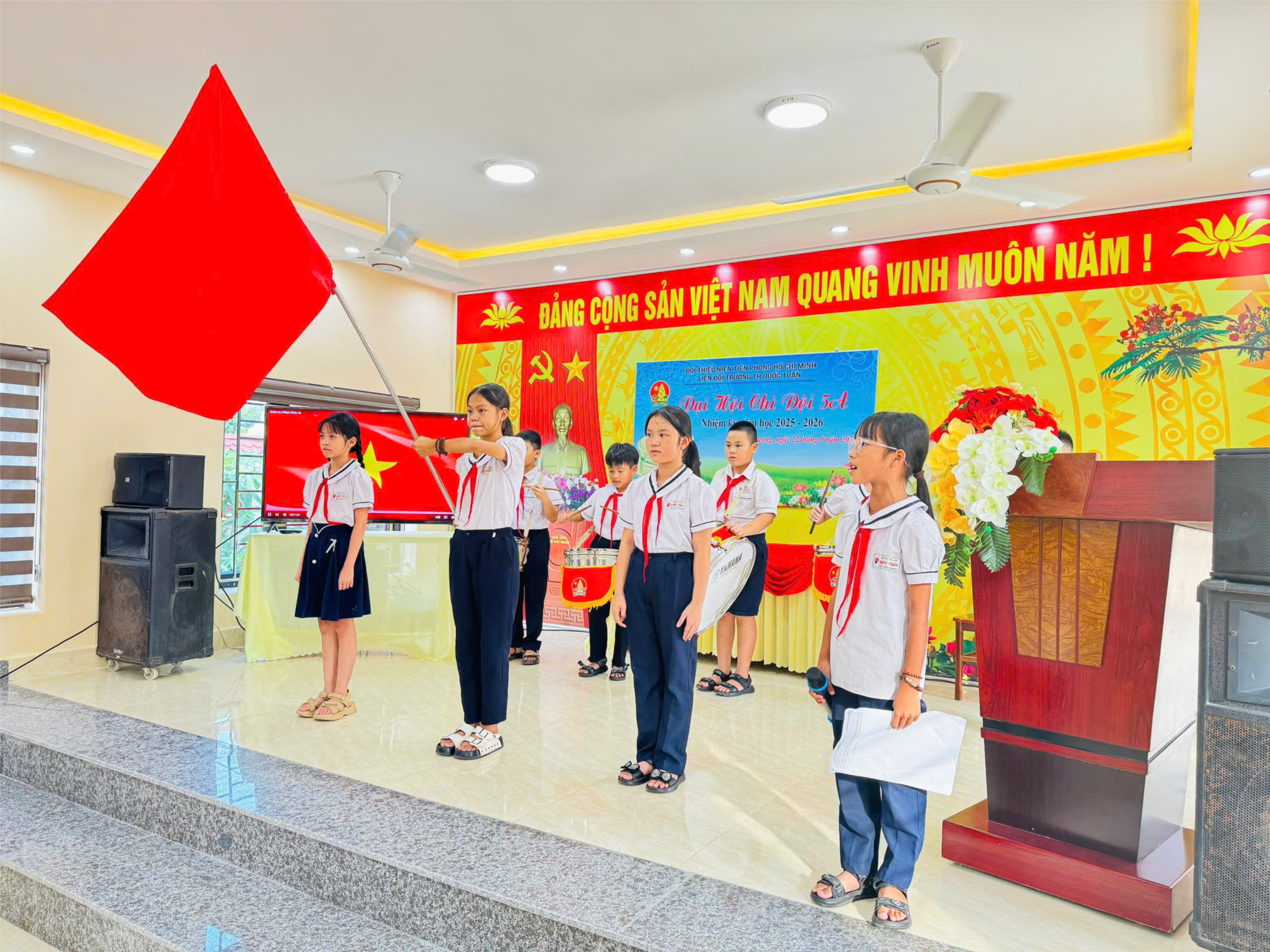 Ngày 22 tháng 09 năm 2025 :Thực hiện chương trình Công tác Đội và phong trào thiếu nhi năm học 2025 - 2026. Liên đội Kim Đồng trường Tiểu học Quốc Tuấn triển khai tổ chức Đại hội Chi đội điểm tại lớp 5A tiến tới Đại hội chi đội đại trà tại các lớp nhiệm kì năm học 2025-2026.