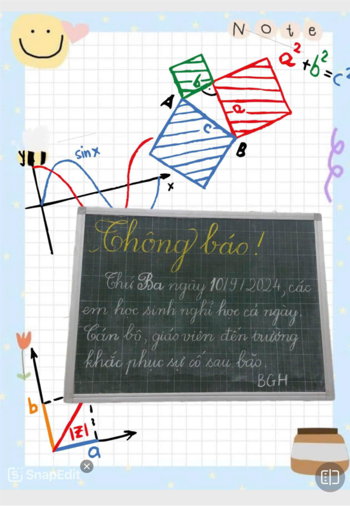 🌲🌲🌲🌲Trường TH Quốc Tuấn thông báo cho học sinh nghỉ học ngày 10/9/2024 cho đến khi có thông báo mới (lí do: nhà trường tập trung khắc phục hậu quả sau bão; điều kiện an toàn giao thông, điện, nước, vệ sinh môi trường... chưa đảm bảo).